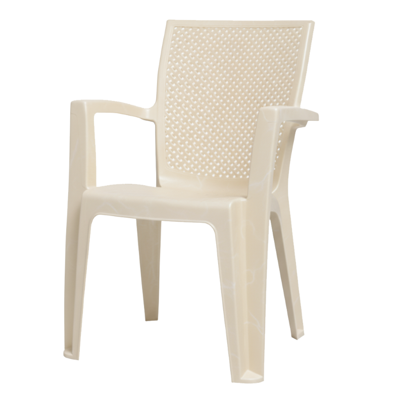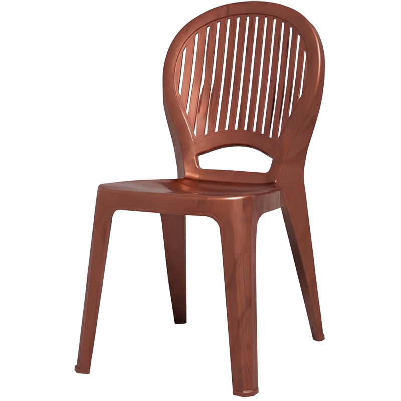 The chair is basic and molded in PP, making it lightweight, suitable for garden/patio settings.