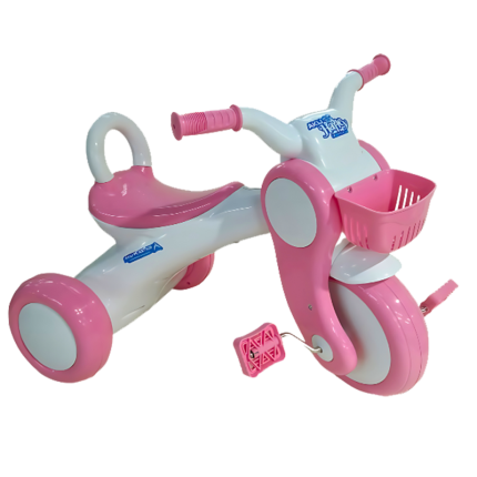 This Kids Ride-On Tricycle/bike is a fun and safe way for little ones to enjoy outdoor play. Designed with a sturdy plastic body, comfortable seat, and easy-grip handles, it ensures a smooth and secure ride. The bright red and white color adds charm, while the rear basket lets kids carry their favorite toys. With non-slip pedals and durable wheels, it offers great balance and comfort. Ideal for children aged 2–5 years, this tricycle helps develop coordination, confidence, and motor skills — making it a perfect companion for early learning and adventure.