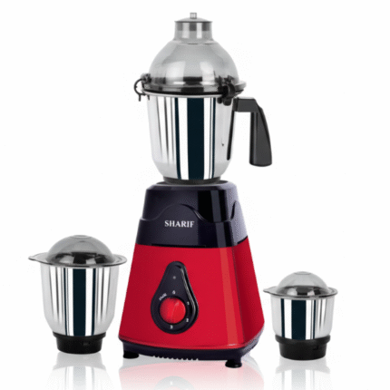 This Sharif Mixer Grinder is a powerful 850W appliance designed for efficient and versatile kitchen use. It includes three stainless steel jars for liquidizing, grinding, and chutney preparation. The sleek red and black body adds a modern touch, while ergonomic handles ensure comfortable use. Equipped with sharp stainless-steel blades, three-speed control, and overload protection, it guarantees consistent performance and safety. Ideal for blending, grinding spices, preparing chutneys, or making batters, this mixer grinder is a perfect addition to any modern kitchen, combining durability, style, and functionality for everyday cooking convenience.