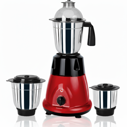 This Vision Mixer Grinder is a powerful 750W appliance designed for efficient and versatile kitchen use. It includes three stainless steel jars for liquidizing, grinding, and chutney preparation. The sleek red and black body adds a modern touch, while ergonomic handles ensure comfortable use. Equipped with sharp stainless-steel blades, three-speed control, and overload protection, it guarantees consistent performance and safety. Ideal for blending, grinding spices, preparing chutneys, or making batters, this mixer grinder is a perfect addition to any modern kitchen, combining durability, style, and functionality for everyday cooking convenience.