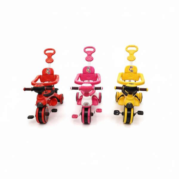 Crafted with a sturdy plastic frame, ergonomic seating, and non-slip pedals, the tricycle ensures a smooth and secure ride. The backrest provides added support, while the easy-grip handlebars make steering effortless for small hands.