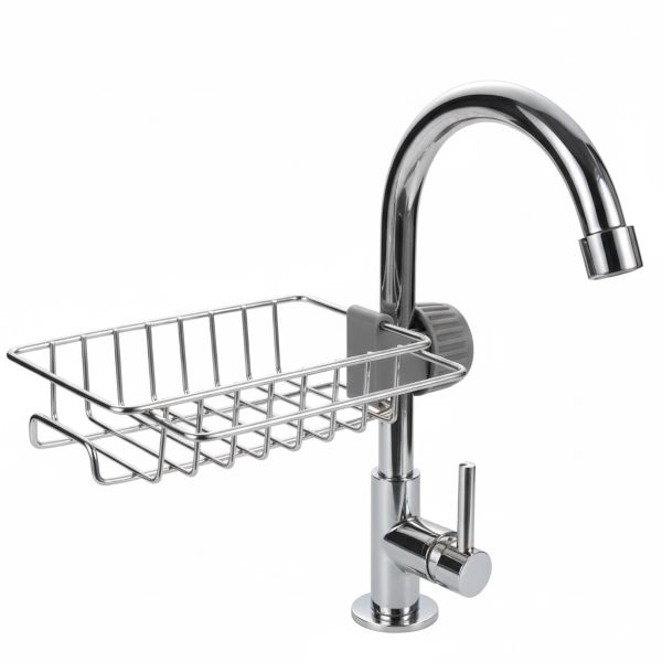 The Faucet Sink Rack is a stainless steel, punch-free storage organizer ideal for holding sponges, soap, and rags. It keeps your sink area tidy and well-drained — perfect for both kitchen and bathroom use.
