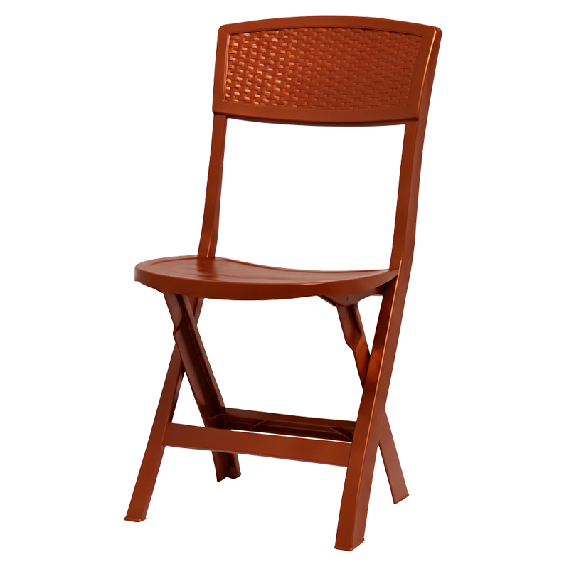 Constructed from High-Density Polypropylene (PP) plastic and a powder-coated steel frame, it provides supportive, contoured seating with a stylish woven-look backrest. It folds flat to 2.5″ deep for effortless transport and space-saving storage, making it ideal for events, patios, and flexible home or commercial seating.