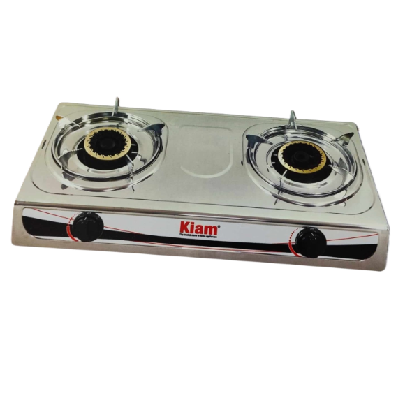 The Kiam 2-Burner Gas Stove combines elegance, durability, and performance for modern kitchens. Featuring a toughened glass top with a sleek black and red finish, it adds a stylish touch to your cooking space. The two high-efficiency brass burners ensure even flame distribution for faster cooking, while the heat-resistant knobs and anti-skid rubber legs provide safety and stability. Its stainless-steel body is rust-resistant and easy to clean, making it ideal for daily use. Perfect for small to medium-sized families, this gas stove delivers reliable performance with a modern design that enhances both function and style.