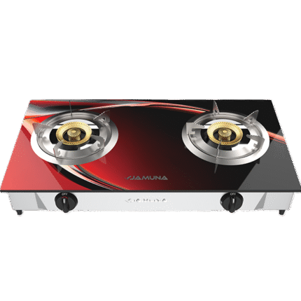The Gazi 2-Burner Gas Stove combines elegance, durability, and performance for modern kitchens. Featuring a toughened glass top with a sleek black and red finish, it adds a stylish touch to your cooking space. The two high-efficiency brass burners ensure even flame distribution for faster cooking, while the heat-resistant knobs and anti-skid rubber legs provide safety and stability. Its stainless-steel body is rust-resistant and easy to clean, making it ideal for daily use. Perfect for small to medium-sized families, this gas stove delivers reliable performance with a modern design that enhances both function and style.