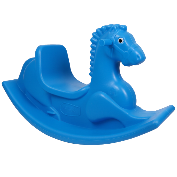 This durable, non-toxic plastic rocking horse features a fun blue horse shape and is perfectly sized for toddlers aged 1–4 years.