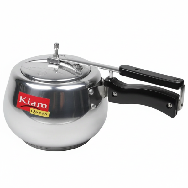 The Kiam Pressure Cooker Queen is crafted from high-grade aluminum for fast, even cooking and long-lasting durability. Its sleek silver body with sturdy black handles ensures both style and comfort. Featuring a secure locking lid, safety valve, and heat-resistant handles, it guarantees safe and efficient use. Ideal for gas stoves, this cooker helps save time and energy while preparing rice, meat, lentils, or stews. Perfect for both home and restaurant kitchens.