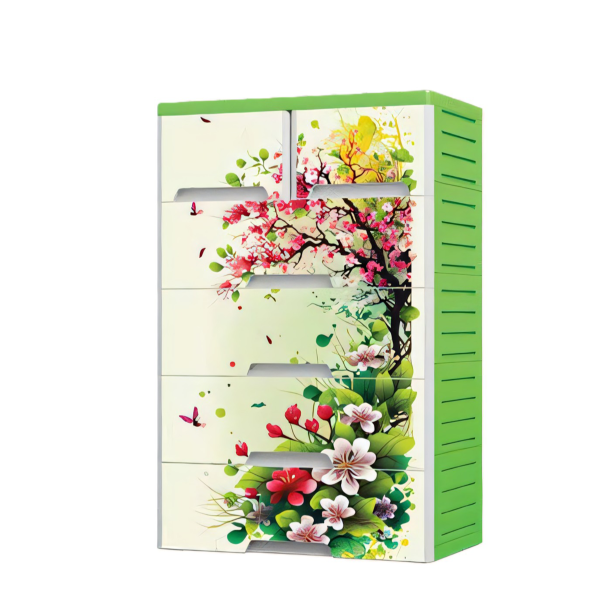 - Elegant floral pattern with vibrant print, modern finish, and smooth drawer handles