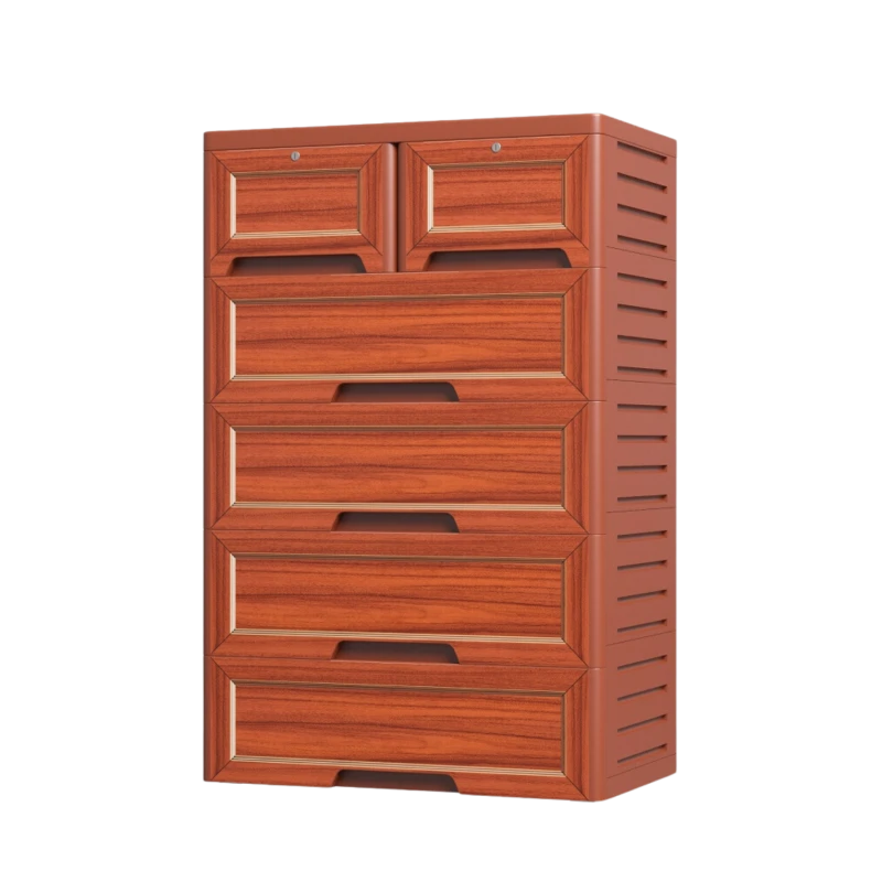 Large size Designed with 5 spacious drawers, it provides ample storage space for clothes, accessories, toys, or household essentials. The wardrobe is made from durable, high-quality material, ensuring long-lasting use while keeping your belongings organized and safe. Its compact size makes it suitable for bedrooms, living spaces, or kids’ rooms.