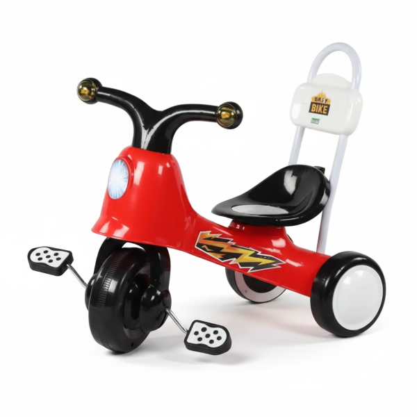 Crafted with a sturdy plastic frame, ergonomic seating, and non-slip pedals, the tricycle ensures a smooth and secure ride. The backrest provides added support, while the easy-grip handlebars make steering effortless for small hands.