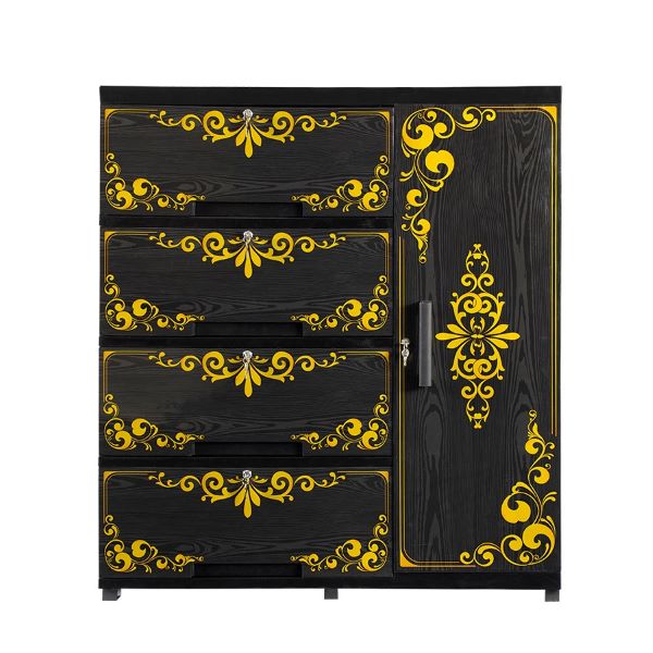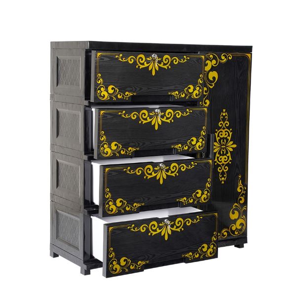 Name: Black & Gold Multi-Drawer Plastic Storage Cabinet with Side Locker