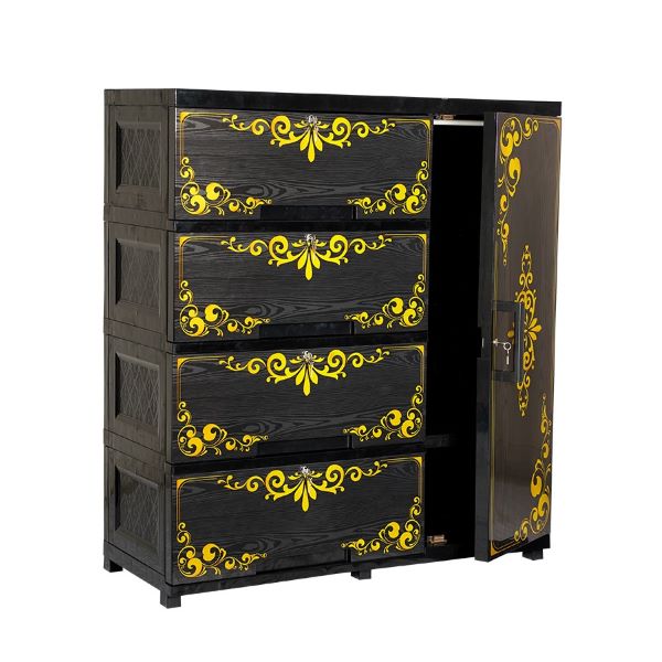 Wardrobe King a material called Insect Repellant Master batch Large size is being used in the product to keep the cloth protected from harmful insects like cockroaches, ants, etc. The UV-stabilized color coating ensures long-lasting color with glossiness. 100% virgin material makes the product strong and durable. RFL Wardrobe king size has hanging facility, adjustable shelf and separate locks for each Drawer/Shelf.