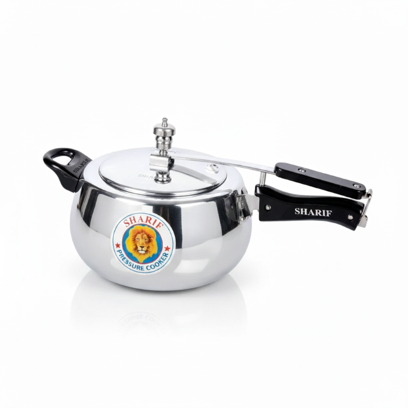 The Sharif Pressure Cooker is crafted from high-grade aluminum for fast, even cooking and long-lasting durability. Its sleek silver body with sturdy black handles ensures both style and comfort. Featuring a secure locking lid, safety valve, and heat-resistant handles, it guarantees safe and efficient use. Ideal for gas stoves, this cooker helps save time and energy while preparing rice, meat, lentils, or stews. Perfect for both home and restaurant kitchens.