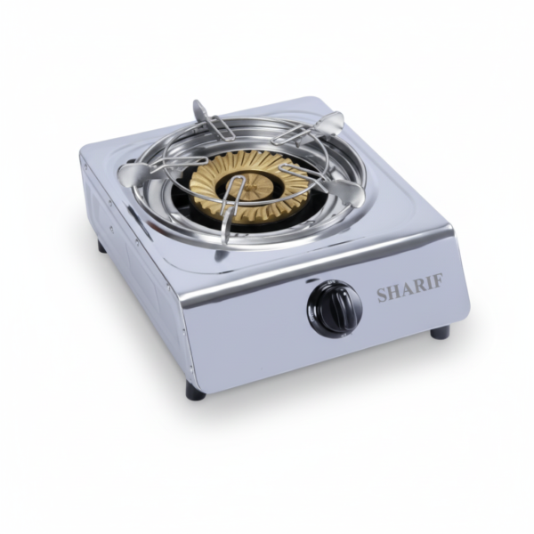The Sharif 1-Burner Gas Stove combines elegance, durability, and performance for modern kitchens. Featuring a toughened glass top with a sleek black and red finish, it adds a stylish touch to your cooking space. The two high-efficiency brass burners ensure even flame distribution for faster cooking, while the heat-resistant knobs and anti-skid rubber legs provide safety and stability. Its stainless-steel body is rust-resistant and easy to clean, making it ideal for daily use. Perfect for small to medium-sized families, this gas stove delivers reliable performance with a modern design that enhances both function and style.