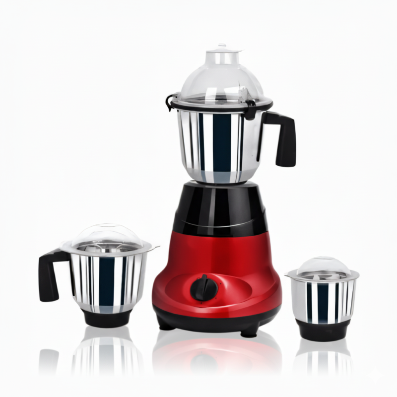 This Sharif Mixer Grinder is a powerful 650W appliance designed for efficient and versatile kitchen use. It includes three stainless steel jars for liquidizing, grinding, and chutney preparation. The sleek red and black body adds a modern touch, while ergonomic handles ensure comfortable use. Equipped with sharp stainless-steel blades, three-speed control, and overload protection, it guarantees consistent performance and safety. Ideal for blending, grinding spices, preparing chutneys, or making batters, this mixer grinder is a perfect addition to any modern kitchen, combining durability, style, and functionality for everyday cooking convenience.