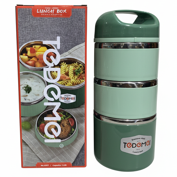 The Tedemei Stainless Steel 3-Layer Lunch Box (1.43L) is a durable, leak-proof food container perfect for work or school. Featuring high-quality stainless steel and thermal insulation, it keeps your food fresh and warm for hours. Its three-tier design allows for organized, spill-free, and healthy meals on the go.